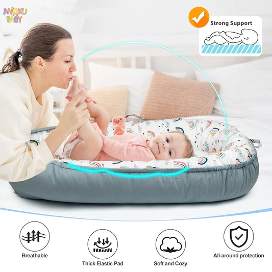 Detachable Baby Nest for Newborn 0-12 Months 100% Cotton Infant Nest for Boys & Girls Breathable Baby Lounger fit Home & Travel